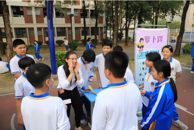 12月1日下午,校园的小广场变身为英语游乐天地。我校初中部精心打造的“Fun with English”趣味英语游园会火热开启,初中部同学们聚集一堂,共同体验了一场独具创意和实践意义的英语盛宴。
