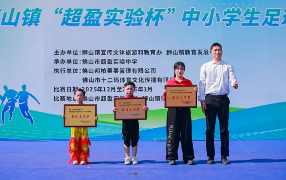超盈足球,一马当先,名扬省内。1月10日,历经多日精彩角逐的2025狮山镇“超盈实验杯”中小学生足球锦标赛在圆满落下帷幕。来自狮山镇各中小学的41支代表队整齐列阵,共同见证一场关乎教育愿景与青少年成长的体育盛事——“南海区少年体育学院狮山分院足球项目总基地”揭牌仪式及狮山镇“超盈实验杯”中小学生足球锦标赛颁奖仪式同日启幕。