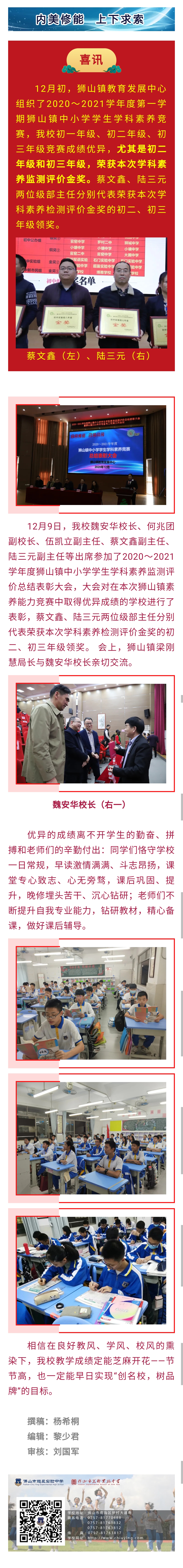 【喜讯】我校获得狮山镇学科素养检测评价金奖!